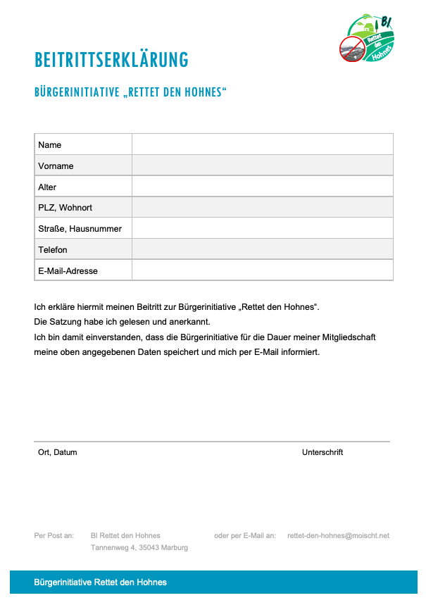 Bürgerinitiative Mitglied werden RECHTLICHES Impressum Datenschutz PARTNERWEBSEITEN Beltershausen-Frauenberg Ebsdorfergrund NABU Marburg PARTNERWEBSEITEN Bürger gegen InterKom 3 & 4 EMU Ernährungsrat MR Kein Görzhausen IV KONTAKT rettet-den-hohnes@moischt.net